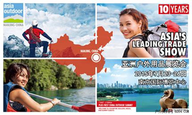 亚洲户外展是户外品牌商、经销商、行业媒体最广阔的交流平台;是户外圈人士每年必到的交流盛宴;是最新产品、最新技术、最新活动发布的主会场。第十届亚洲户外展已定于2015年7月23-26日在南京国际博览中心准时登场,十周年荣耀庆典,届时会有哪些新的活动亮点和感恩回馈,预告第一波为您呈上。
