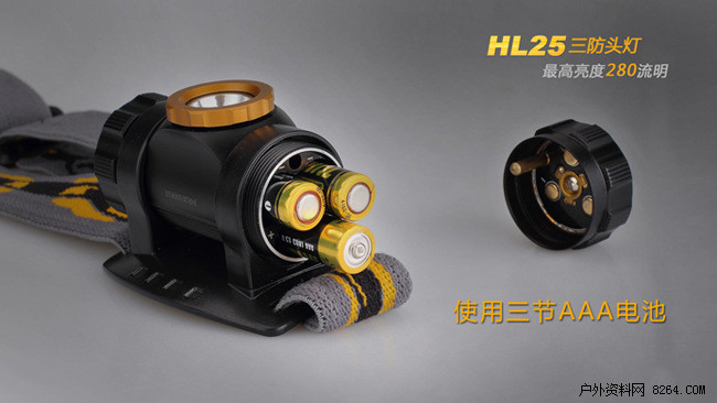 HL25使用三节AAA电池供电,这也是目前头灯的主流配电方式。三节AAA电池能让头灯从亮度、重量到续航等得到全面的均衡。