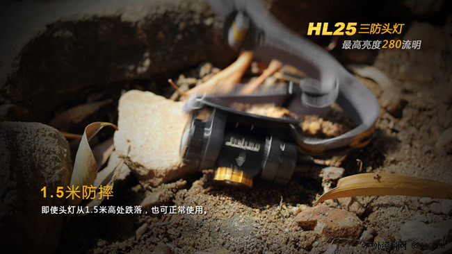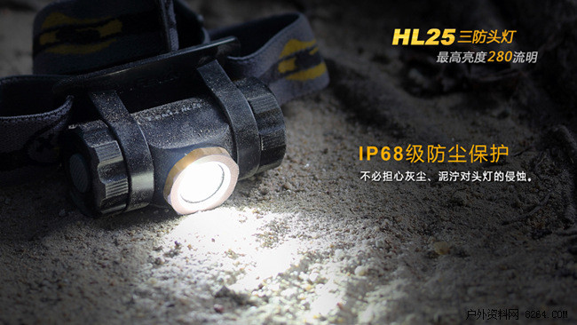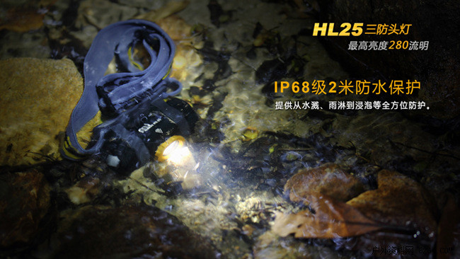 HL25三防头灯具备2米防水、1.5米防摔和6级防尘能力。强大的"防水、防尘、防摔"三防性能,能充分保障