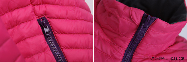 外套采用两层防水透气面料,具有抗撕裂、超防泼水功能。胸袋采用进口装饰膜镭射切割开袋,撞色防水拉链,提升整件衣服的时尚气息。款式分割线条流畅。整件衣服的拼缝采用专业压胶工艺,保证成衣的防水,防风功能。内胆为超薄羽绒羽绒服,填充物为含绒量90%的拒水羽绒,外观绗线美观,彰显女性阴柔之美。整件衣服全部采用YKK拉链,整体面辅料品质保证。