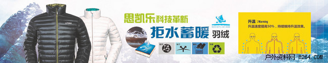 据了解,思凯乐2014秋冬推出的全新拒水蓄暖功能羽绒,是思凯乐结合最新羽绒科技推出的革命性的机能性羽绒科技。其科技原理是结合羽绒热回馈技术与拒水技术,成功的将拒水功能加以高分子化方式与天然羽绒完全结合,使天然羽绒的拒水功能和蓄热功能提高到最极致!不但使传统羽绒延长干燥状态,维持弹性,并于清洗羽绒后缩短烘干时间!经研究室实验测试,拒水蓄暖功能羽绒比一般羽绒升温速度提高50%,持续维持相对升温4度,其烘干时间也比一般羽绒的的烘干时间节省一倍以上,水洗10次后仍然可以保有正常羽絨的极佳蓬松性。可全方位满足冬季户外活动的需求。