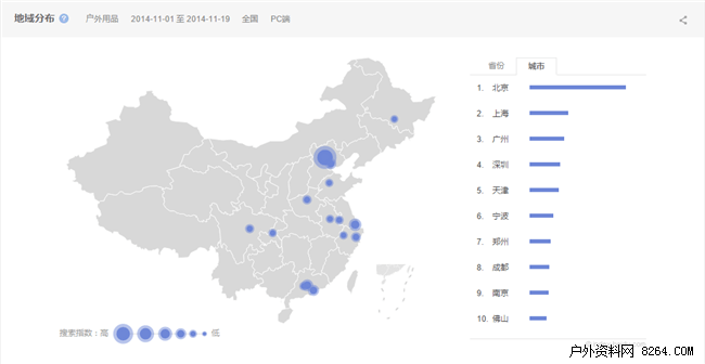 户外用品搜索地域热区分析