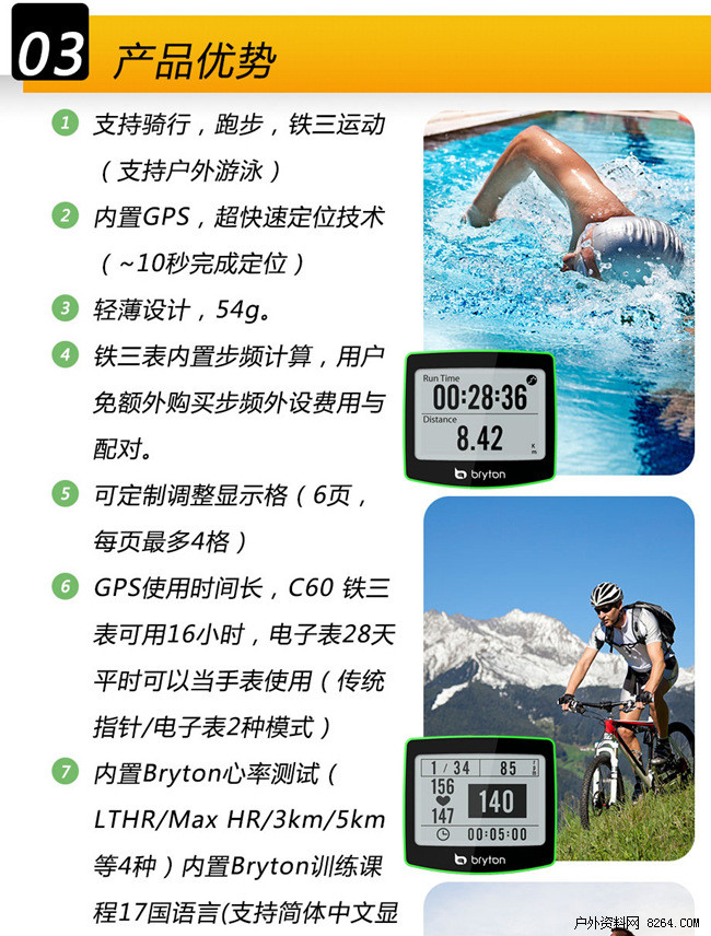 百锐腾是台湾著名的运动手表品牌,其所生产的GPS消费电子类产品,在业内享有盛誉并被专业运动员和资深驴友广为接受。C60E的产品功能十分强大,作为一款专业户外铁人三项GPS运动腕表,它在实际中的表现都是非常完美的,值得一试。