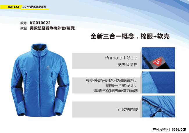KAILAS品牌初冬推出全新户外穿着概念,棉服+软壳。软壳对比硬壳更透气,穿着无摩擦噪音,保暖,因为面料本身带一定的延展性,体感舒适。棉服对比一般的羽绒抓绒具有优异的保暖能力,在湿寒环境下表现更为优异,不怕水。同时棉服快干,也因为其优异的抗水能力,所以也可以作为隔绝层使用,压缩性好,重量轻。