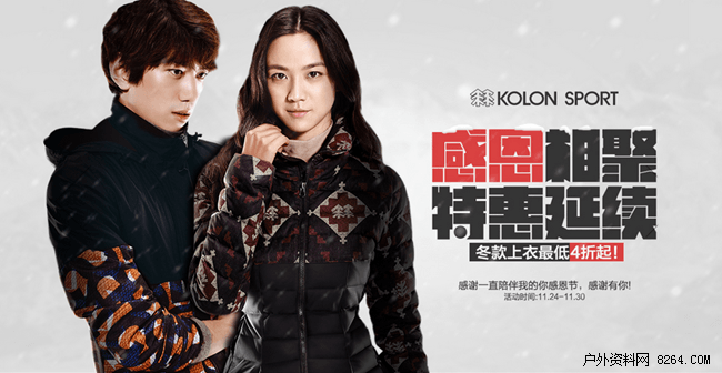 感恩节正在进行。KOLON SPORT天猫官方旗舰店感恩回馈活动正在开展。有兴趣的朋友可以去选购自己喜欢的时尚户外产品。