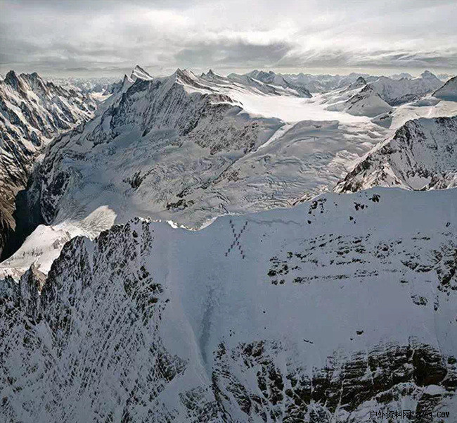 雪地上的X标志:2011年艾格尔峰北坡上,登山者们不顾危险组成了这一图案。