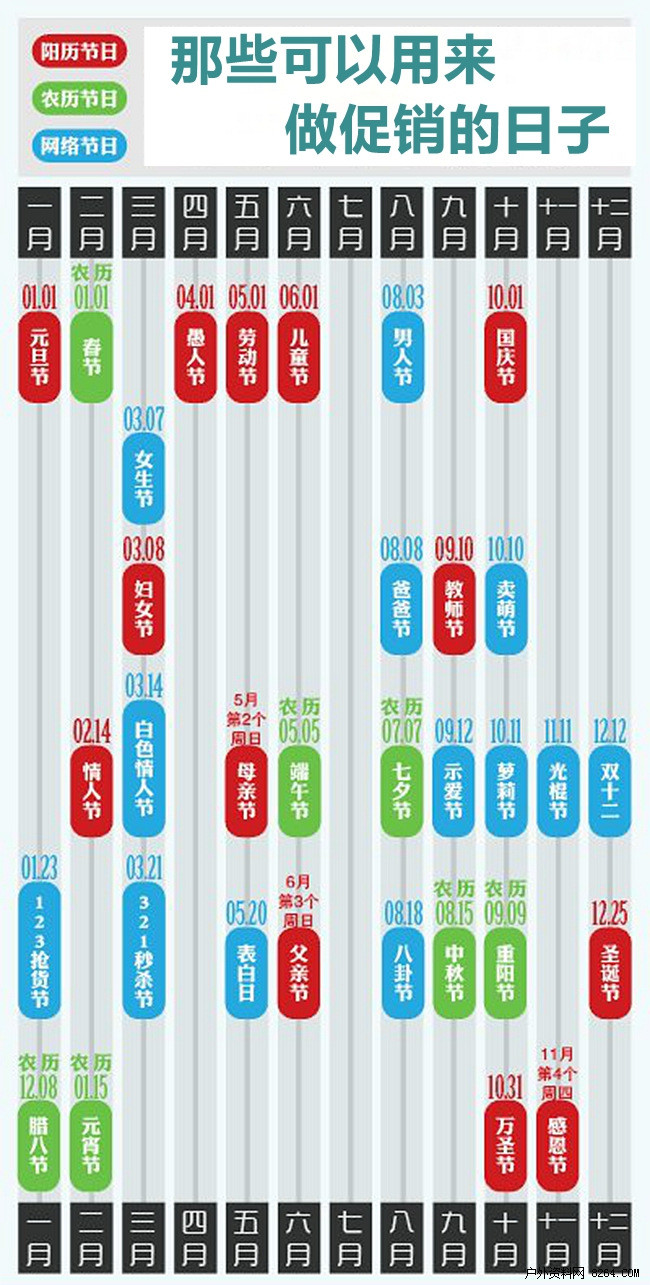 先让我们看看,每年有多少节假日可以用来做促销的由头。