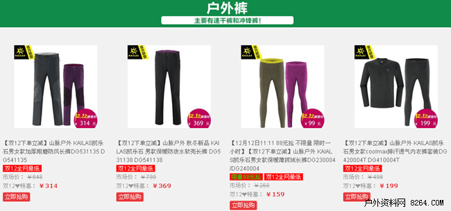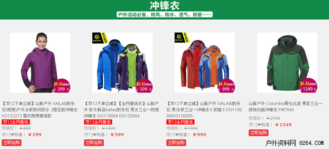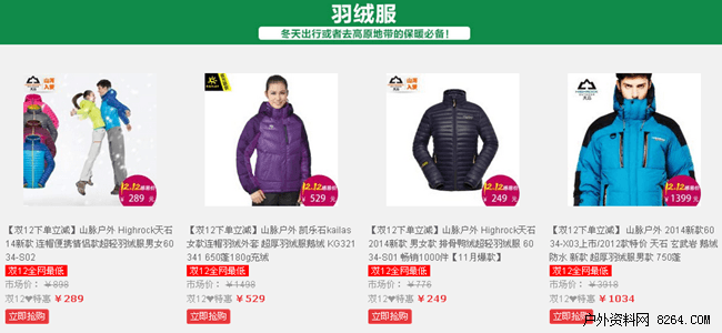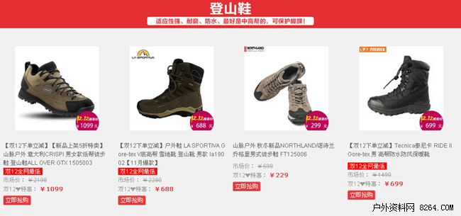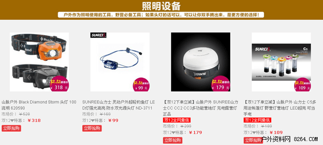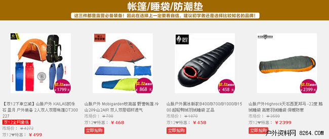 拒绝先涨后降,山脉户外户外双十二优惠火爆来临。在活动期间,山脉户外精心甄选了一系列户外产品,从冲锋衣到背包,从灯具到高科技装备,从帐篷睡袋到野营物品,全方位的为您打造户外购物一站轻松之旅。在小而美和大而全之间,山脉户外用自己完善的正品供货渠道和专业推介,为驴友朋友们带来了一次全方位的户外装备升级之旅。