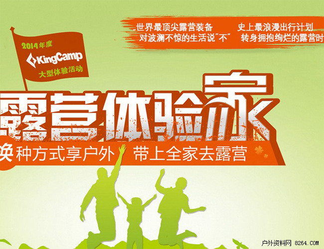 2014KingCamp最优秀的露营体验家?万里挑一的巅峰对决,众望所归的无上荣誉,KingCamp联合8264户外资料网启动年度总评选活动,对48名露营体验家进行评比,从中选出1名最优秀,获得价值8000元的精品露营套装。