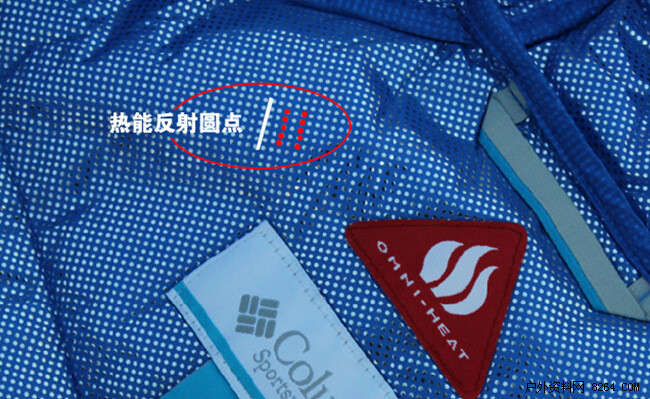 Omni-Heat热能反射圆点Columbia双重热能反射羽绒,由户外太空毯反射物料得到启发,衣服的内里附着Omni-Heat银色圆点面料,银色圆点面料可高效反射人体热能,降低热量流失,同时也具有很强的透气性。再结合高蓬松度优质羽绒,保暖同时更轻盈贴身,令运动自如无负担。而高蓬松度的优质羽绒材质保证了高压缩性,可轻易打包,随身携带。
