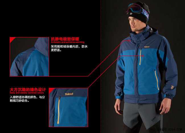 据天伦天运营总部相关负责人处介绍:"天伦天高效防护冲锋衣,是由天伦天服装设计团队精心打造,其运用了天伦天全能防护系统的高效防护科技系统,可经受长时间的、连续的户外考验,仍保持良好的防风、防水、透气性能,另外,针对冬季天气特点,增加了冲锋衣的抗静电功能。