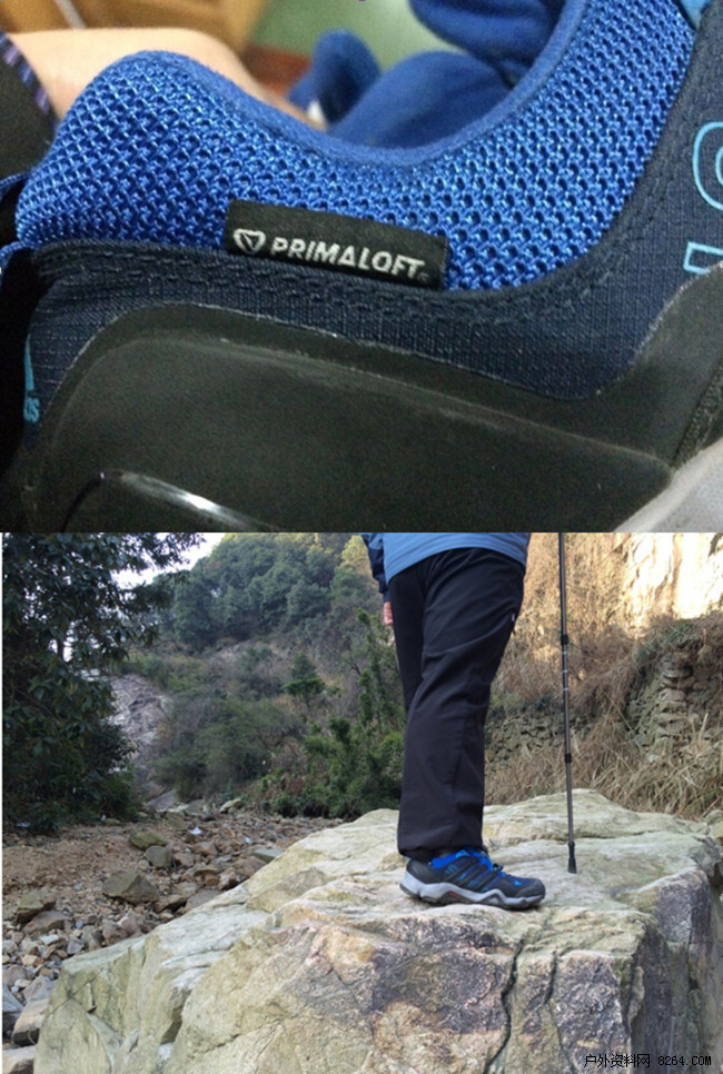 先具体来说说这款鞋的鞋面,鞋面采用了PRIMALOFT绝缘材料,这个科技玩户外的大家应该都比较熟悉,是一种保温的材料,非常适合于应用在潮湿和有雪的天气环境中,因此广泛应用在高质量的滑雪手套、睡袋和服装的填充物上面,一些顶尖级服装品牌都在使用它做为服装的填料。笔者试穿了后,在南方只有几度的气温下,穿着后依旧非常保暖,这一点点赞。而且笔者发现一个现象,当经过一天的徒步,脚的排汗量到达最大值时,坐在地上鞋面贴地,站起来后,地面有明显的水汽痕迹,说明了此款鞋的透气性也是相当不错的,这个应该点赞。而且防水性能也是相当的不错。