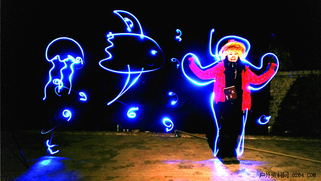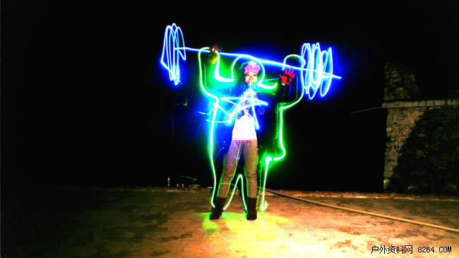 有趣的是,在拍星星的间隙,极客们脑洞大开,使用手机的"光绘"模式开始了光绘的创作。第一次看到自己与光绘作品融为一体。