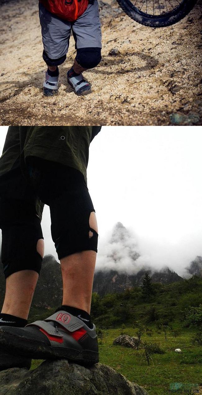 下面该谈到FIVE TEN赖以成名的绝活儿——大底,天知道这位工商管理学出身的FIVE TEN老大Charles是怎么鼓捣出这些玩意儿的,或许就连他自己都没想到他的橡胶使FIVE TEN骑行系列成为另一个有力的销售增长点。早在上世纪九十年代,Charles去往攀岩的路上偶遇一帮山地骑手,他们居然统一将FIVE TEN当时单独出售的鞋底附在了他们鞋子原本的大底上,究其原因,这帮山地疯子说只有FIVE TEN的大底橡胶的粘性才能确保在极速颠簸保证与脚踏的附着力。如果你是FIVE TEN的粉儿,压根就不用去解读那些烦冗晦涩的S1,C4,HF。只需要用正确的类别去做正确的运动就好了,这些橡胶绝不会令人失望。Maltese Falcon LT Clipless搭载的S1橡胶非常柔软,这种诡异的配方居然还有不错的缓震性能,大底纹路也做了升级更新,与从前的圆点花纹项目,新型的大底花纹增加了更多的凹纹,它基本通吃各类型非自锁型脚踏,抓脚性令人拍案叫绝。MTB车手如果搭配那种堪称小腿皮肤杀手的齿钉脚踏,无论路面有多么颠簸哪怕是飞包,双脚也没有滑出脚踏的可能,夸张点说,S1橡胶还真有点想神奇四侠的老大橡皮人。当然,Maltese Falcon LT Clipless还兼容SPD自锁系统,它就隐藏在前掌的方形橡胶下面,只是由于我们在扎尕那山区要进行大量的推车爬坡过程,所以并没有将它取下。