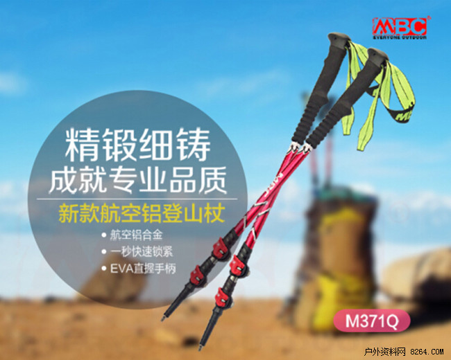7075t6铝合金材质,扎实的壁厚,稳重的外观,舒适的加长手柄,耐磨的钨钢杖尖,MBC-M371Q,专业品质,值得信赖。