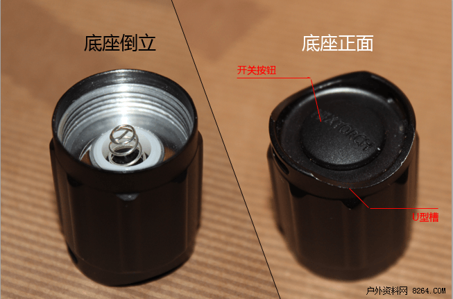 E5尾盖采用U型设计,方便单手操作按钮,同时能倒立放置手电做烛光模式。