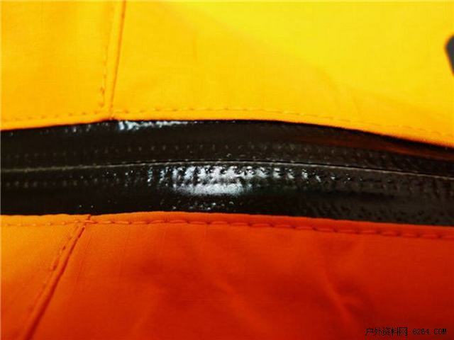 主拉链为黑色,其上覆盖了厚厚的一层压胶,将链扣进行了很好的封闭,从而避免雨水和雪水的侵袭。
