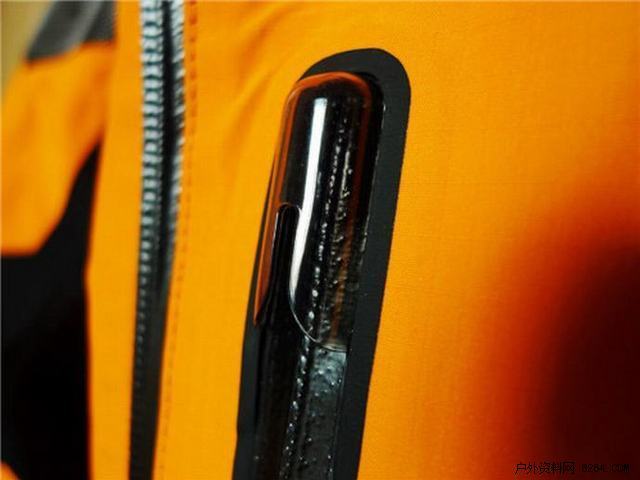 这件冲锋衣的透明塑胶拉链端头防水遮挡,中间开有小槽,方便拉绳嵌入,这样的设计无疑更加优秀,这可谓是细节之处见真章啊