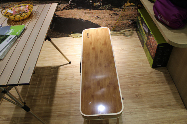 此款组合台从外观上来讲,质感金与雅致竹精细融合的搭配设计将色彩组合完美呈现,简单、时尚、高雅;结构上:整体全折叠结构细化设计,手提箱式收纳结构化处理,十字交叉承重贴心化构造,将桌椅的结构塑造更完美,完全根据户外的实际需要深化打造;此外材质上采用全封铝卷板台面、高强铝合金支架、竹纹光面铝塑板凳面与环保原生PE材料的整体设计,使整套产品尽显轻巧舒适,生态环保更健康。