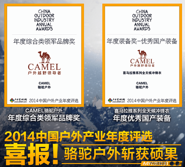 CAMEL骆驼获2014中国户外产业年度评选两项大奖