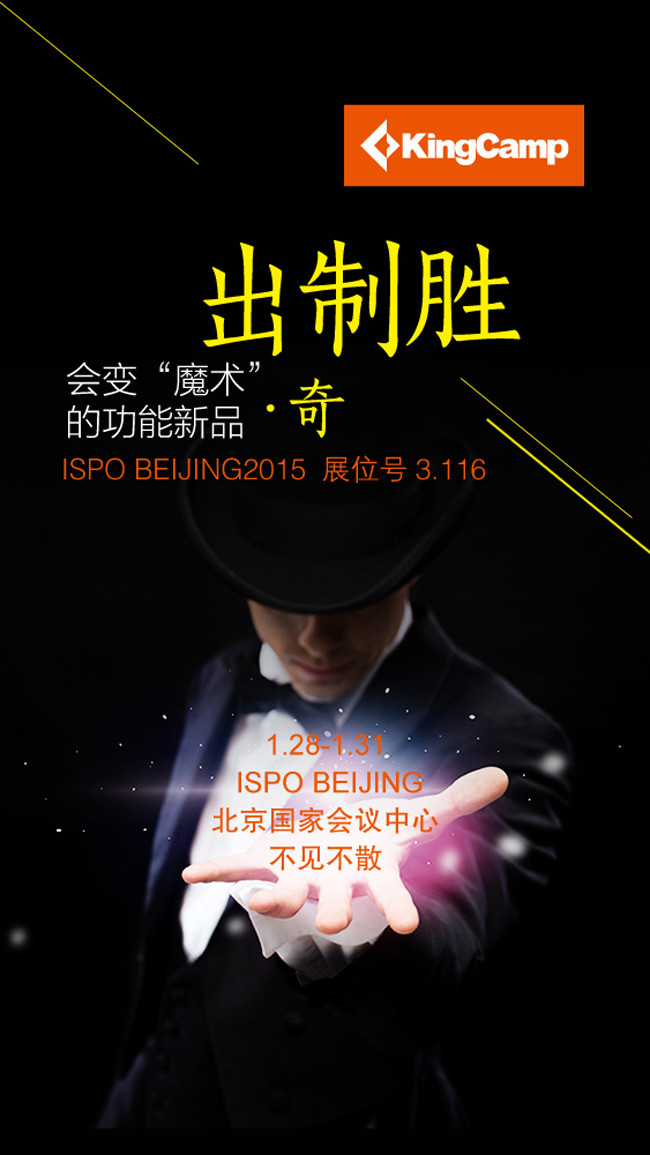 家庭户外倡导者、户外自驾露营装备知名品牌KingCamp确认参展ISPOBEIJING2015(第十一届ISPOBEIJING亚洲运动用品与时尚展)。1月28-31日,北京国家会议中心,KingCamp呈现最尖端自驾露营装备,邀您共赏!