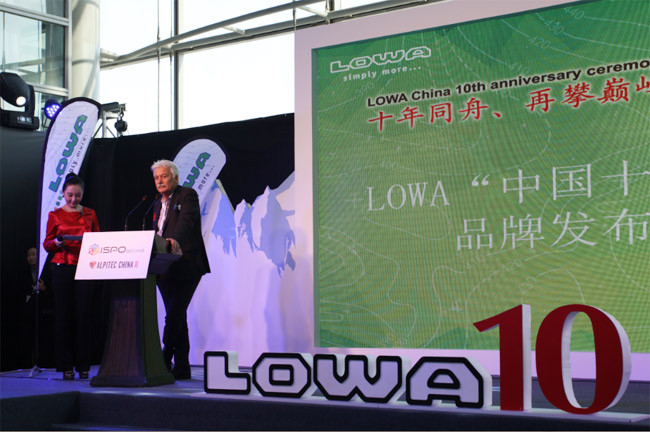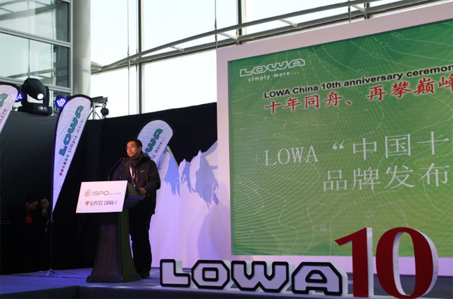 2015年1月28日10时30分,LOWA“中国十周年”品牌发布会在国家会议中心三层观景平台隆重举行。这也是ISPO BEIJING 2015 展会的第一个品牌活动。