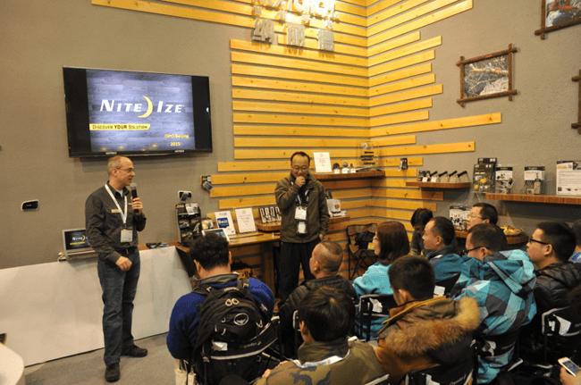 1月29日,纳丽德在展位现场举行了"NiteIze奈爱斯蒂莱推广分享会",此次分享会成功邀请到了土人户外总经理蔡明先生和奈爱全球市场总监Peter Voigtsberger两个大师级的户外创意营销专家为我们作现场营销推广分享。他们销售推广斯蒂莱的创意营销手法,让在座的客户和观众获益匪浅,直呼过瘾。
