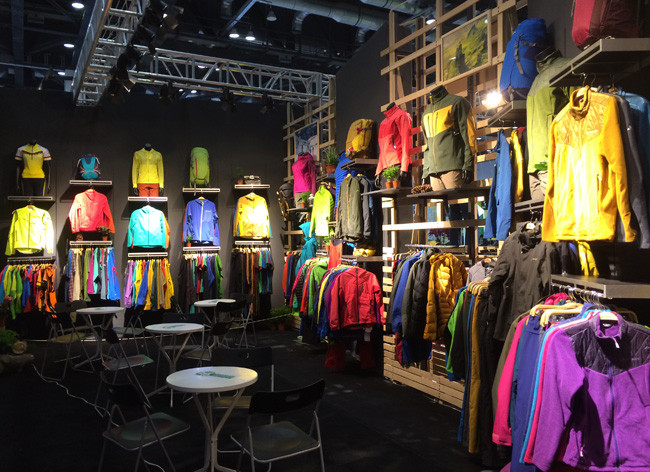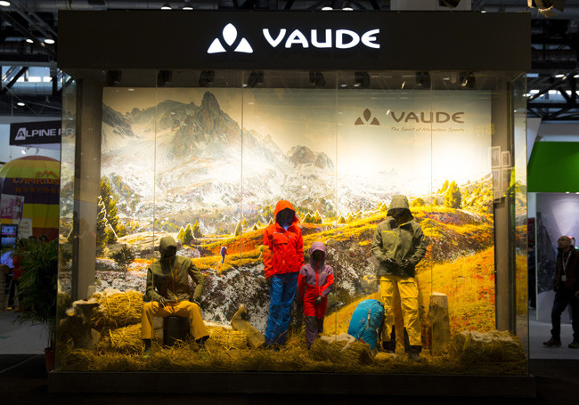 本次展会,VAUDE为提高新品展示的专业度,客户关注产品的专注度,首次尝试采用封闭式产品展示区,外墙展示区配以饱含冬日飘雪风情的户外情景橱窗陈列,以及产品特色鲜明的四大系列主题内容展示,涵盖登山、徒步、旅行、骑行系列。
