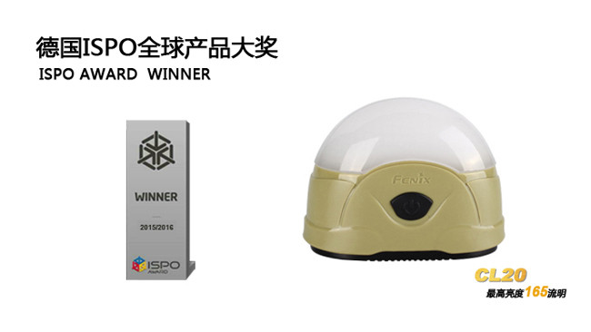 继Fenix新款自行车灯BC30R刚刚斩获"德国ISPO亚洲产品金奖"之后,德国慕尼黑ISPO再传捷报,Fenix首款露营灯"小蜗牛"CL20摘取"德国ISPO全球产品大奖"!作为民族品牌的佼佼者,Fenix再次向国人证明,有实力就是这么任性,Fenix就一直这么高调的站在国际舞台。