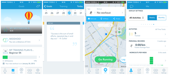 Runtasic pro致力于打造成用户的健康理想伴侣。其团队制定的训练计划丰富多样:从减肥到比基尼身材,从跑步菜鸟到全程马拉松330目标,跑步再也不会漫无目的了。